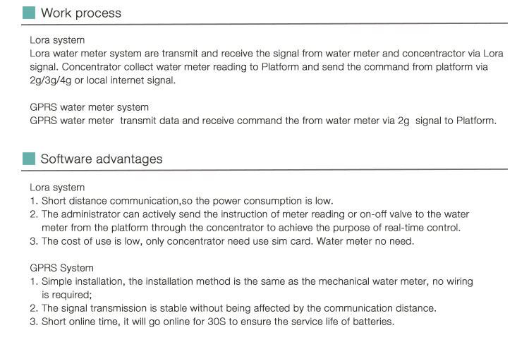 Il-miter tal-ilma GPRS AMR huwa taħlita ta 'teknoloġija ta' aċċess mingħajr fili GSM u teknoloġija tal-iswiċċjar tal-pakketti tal-Internet. Aqra awtomatikament id-dejta tal-metraġġ permezz ta 'netwerk remot mingħajr fili u tikkontrolla l-għeluq / il-ftuħ tal-valv, u kapaċi wkoll tittrasferixxi d-dejta fil-back-office. sistema (ċentru tad-dejta) wara li taqra l-meters b'qarrej tal-idejn mingħajr fili.